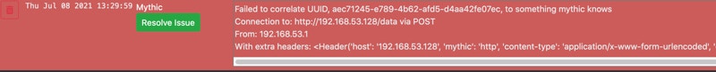mythic: c2profile_name. So, in this case we see 'mythic': 'http' which means that the http profile is forwarding this message along to the Mythic server.